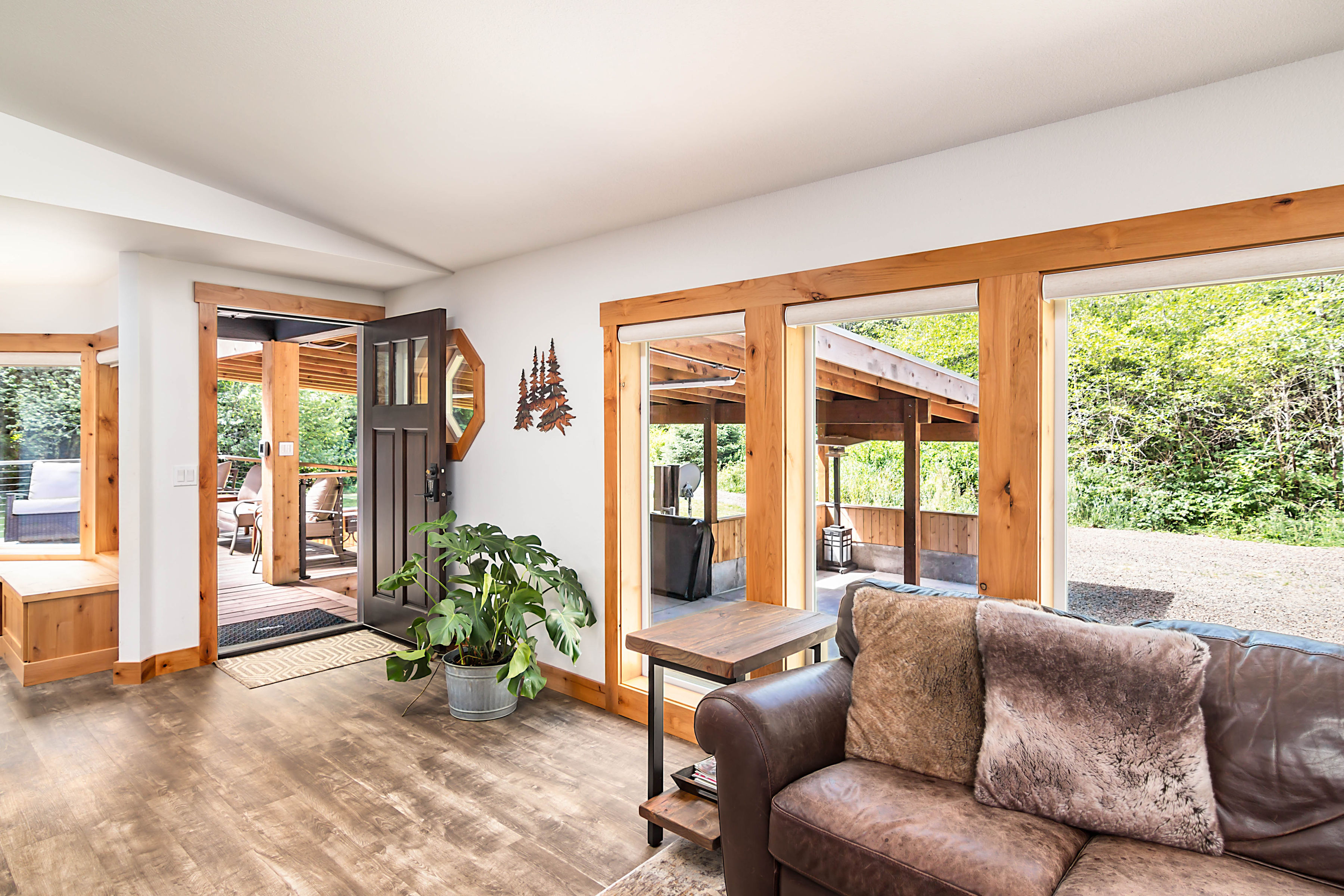 Just five miles from Hwy 101 and the scenic Oregon Coast you will find this secluded forest hideaway on over 10 acres with river frontage for fishing, boating, kayaking, etc. Great location on the Siletz River where peace and quiet abound. This home was recently remodeled and comes with a host of amenities! Generally warmer and sunnier than the coast, the perfect combination of coastal cool and valley warmth! Only 20 minutes from Lincoln City and Depoe Bay. Peaceful and quiet with forest views from every window come relax and get away from it all!